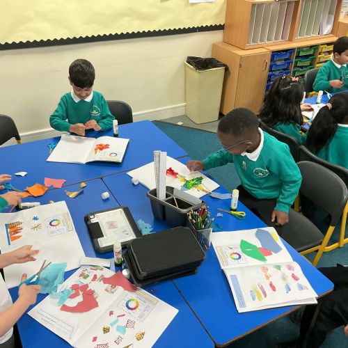 Art has been a colourful adventure! Inspired by The Colour Monster, we experimented with paint and collage, choosing our own materials to create unique masterpieces.